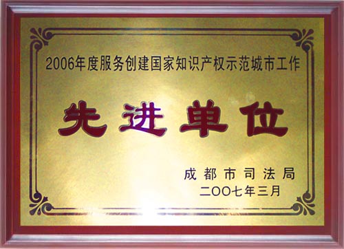 2006年度服务创建国家知识产权示范城市工作先进单位